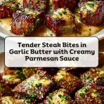 Sink your teeth into the ultimate comfort food with these Tender Steak Bites in Garlic Butter with Creamy Parmesan Sauce. Perfectly seared steak bites are drenched in a luscious, savory garlic butter and finished with a rich Parmesan cream sauce that hugs every corner of each bite.