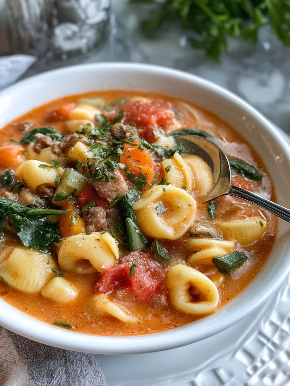 This ultra-creamy pasta soup is loaded with cheese tortellini, crumbled Italian sausage, tender spinach, and tomatoes in a rich garlic Parmesan broth that tastes like your favorite Italian restaurant comfort food in a bowl. It’s cozy enough for cold nights, quick enough for busy weeknights, and family-friendly for picky eaters and soup lovers alike, making it a go-to easy dinner when you need hearty, satisfying comfort fast.