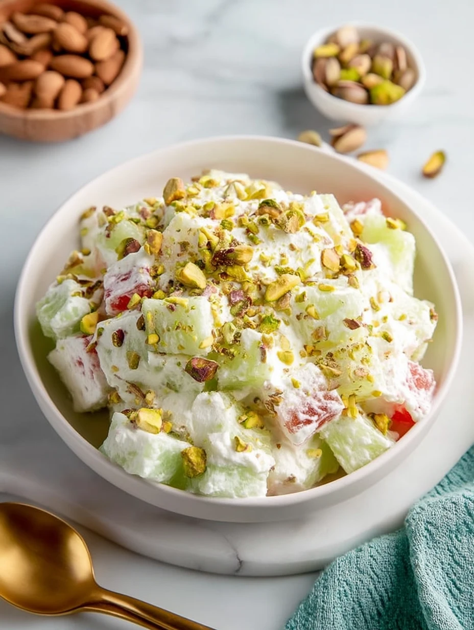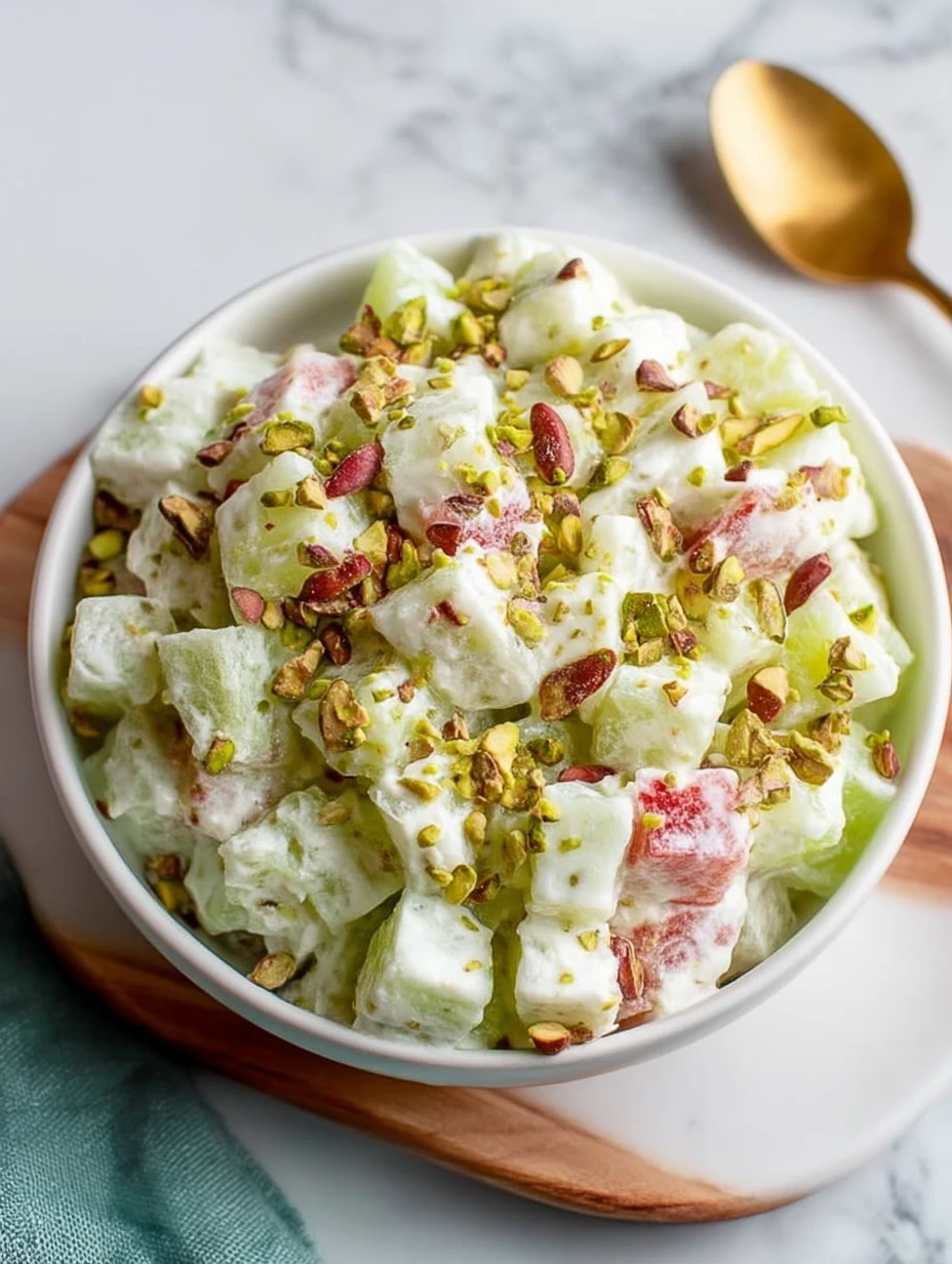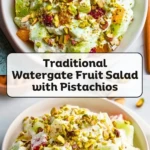 Creamy, nostalgic, and irresistibly fluffy, this Traditional Watergate Fruit Salad with Pistachios is the ultimate no-bake dessert. Perfect for holidays, BBQs, and potlucks, it blends crushed pineapple, pistachio pudding, mini marshmallows, and whipped topping into one retro-chic bowl of goodness. Topped with crunchy pistachios and chilled to perfection, it’s a sweet treat everyone will remember. Great for quick breakfast ideas, easy dessert recipes, healthy-ish snacks, or crowd-pleasing dinner ideas—this classic is always in style.