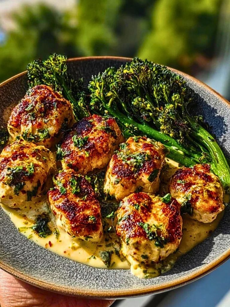 Imagine biting into golden, garlicky chicken bites, crisp on the outside yet juicy inside, tossed in melted parmesan and paired with a bold, creamy sun-dried tomato Cajun Alfredo. Now picture that alongside a plate of perfectly charred broccolini, slightly smoky and irresistibly tender. This dish isn’t just a meal—it’s an experience of textures and flavors that play harmoniously on the palate.