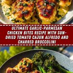 Ultimate Garlic-Parmesan Chicken Bites Recipe with Sun-Dried Tomato Cajun Alfredo and Charred Broccolini
