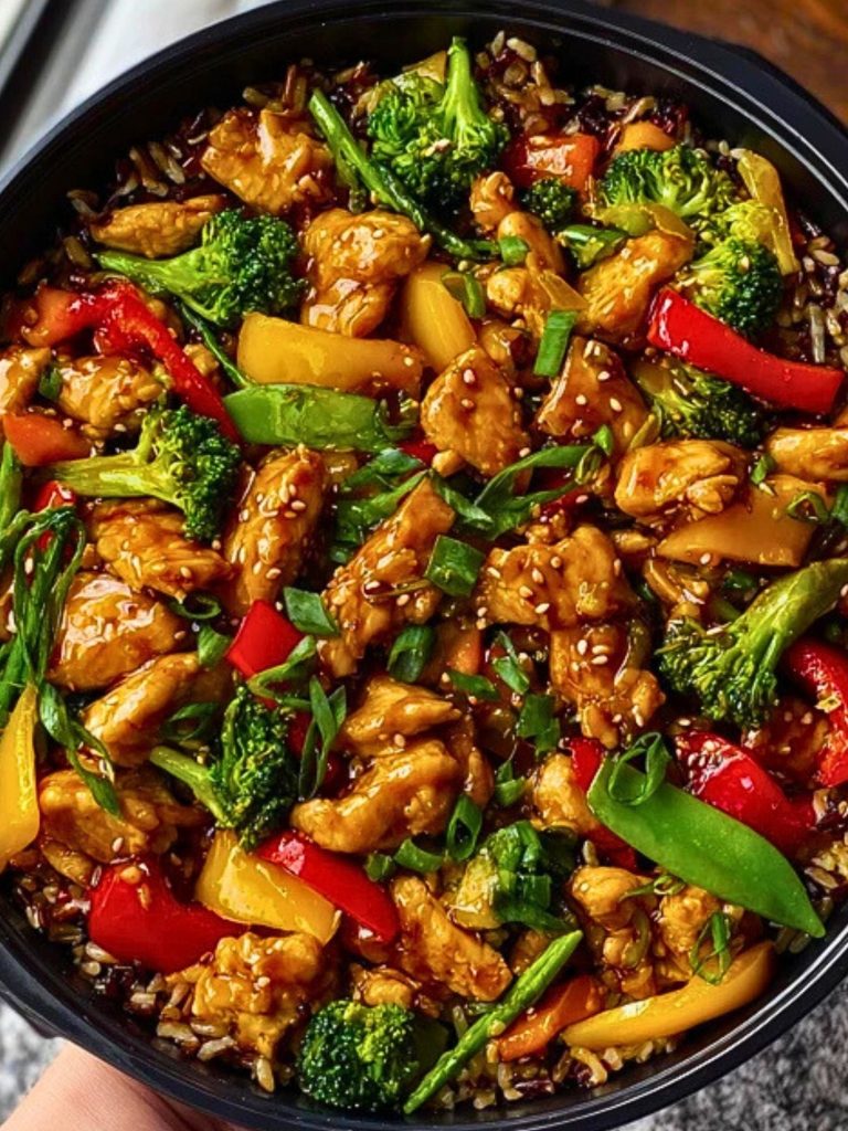Juicy chicken, colorful vegetables, and a glossy homemade teriyaki sauce come together in this quick weeknight stir-fry. Serve over nutty wild rice for a balanced, family-friendly dinner with protein, fiber, and big flavor.