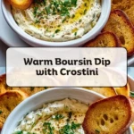 Craving something creamy, cheesy, and oven-baked? This Warm Boursin Dip with Crostini is the appetizer your snack table needs. It melts into a bubbling, herby delight with just a handful of ingredients and under 30 minutes from start to finish. Whether you’re hosting a party or cozying up with comfort food, this quick appetizer is sure to please. Perfect for game days, holidays, or just a fun evening in, it’s one of those easy recipes that feels fancy without the fuss. Ideal for dipping crostini, crackers, or veggies—this is your new go-to party hit.