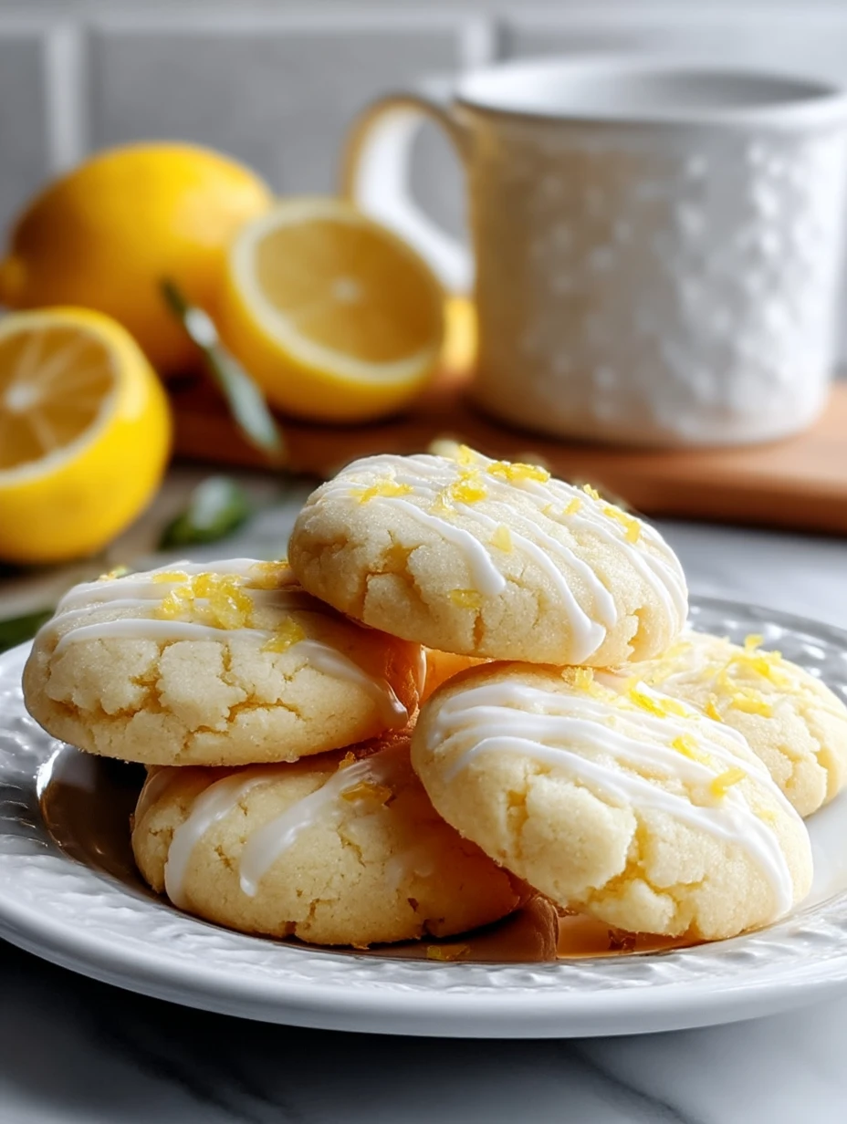 Fresh lemon zest also plays a big role because it adds fragrance without thinning the dough too much. A small amount of lemon juice brings brightness, while the glaze on top locks in even more citrus flavor and gives the cookies their signature meltaway feel.
