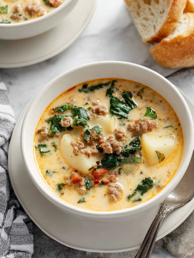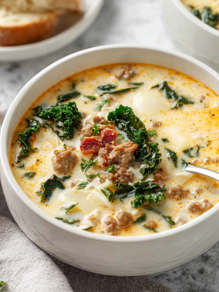 Creamy, hearty, and brimming with bold Italian flavor, Zuppa Toscana is the ultimate comfort soup for chilly nights or cozy weekends. Packed with crumbled sausage, tender potatoes, crispy bacon, and fresh kale swimming in a silky, garlicky broth, it’s a satisfying one-bowl meal that delivers both rustic simplicity and luxurious taste.